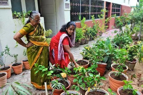 She tried on her own terrace first - orange coloured pots, filled with rich natural organic soils to suit the particular plant and with tender care, watering, and weeding - reward Lakshmi's green thumb with ample supply of vegetables, enough to feed her own family, and plenty left over to gift relatives and friends.