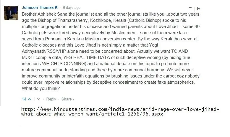 As the topic on Love Jihas has taken a tangential turn, am posting this..