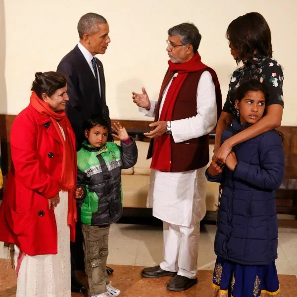 Satyarthi was accompanied by three children his NGO, Bachpan Bachao Andolan (BBA), had rescued from bonded labour, child trafficking and child marriage. US First Lady Michelle Obama interacted with the children and told them that she would visit their shelter with her daughter if they come visiting India again. "She told me that I have a daughter like you and next time if I come to India I will visit Bal Ashram with my daughter. She also asked me to keep up the good work," said one of the children, a young girl who was forced into a child marriage and later rescued by BBA.