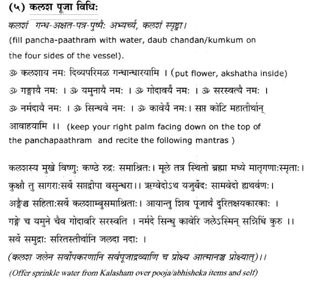 If someone could please give a detailed account of how kalasha pooja should be done, with step by step instructions in English and mantras in sanskrit I would be very very grateful!
