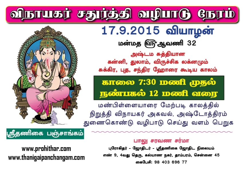 Sri Vinayaka Chathurthi is on 17 th September 2015